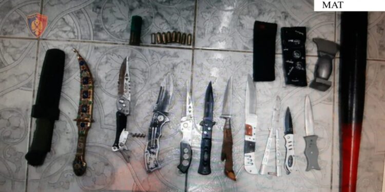 Sekuestrohen 11 thika të përmasave të ndryshme, municioni luftarak dhe shkopi i bejzbollit.