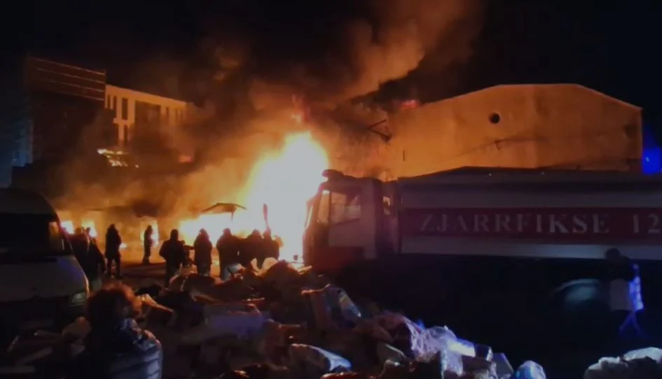 Zjarri masiv që ka rënë tek magazinat e tregut të rrobave të përdorura në rrugën “5 Maji” në Tiranë, nuk po neutralizohet akoma, megjithëse prej më shumë se 1 ore forcat zjarrfikëse po tentojnë ta shuajnë.