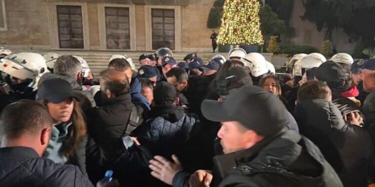 Janë regjistruar sërish tensione në protestën që po mbahet para Kryeministrisë, ku prej ditësh kërkohet dorëheqja e Kryeministrit Edi Rama.