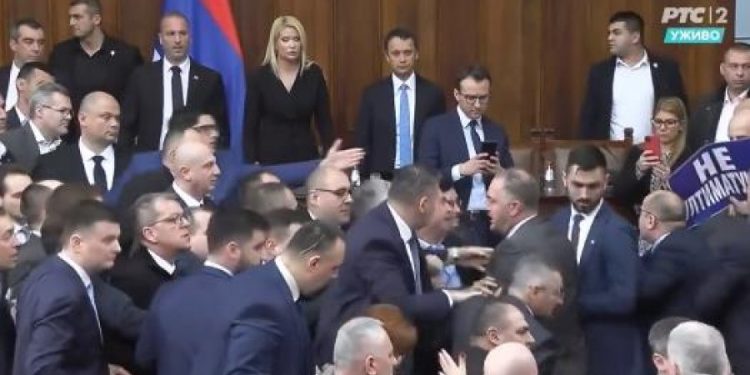 “Për ta, rregullorja është zemra e Serbisë”, tha Vuçiç, pas së cilës deputetët e qeverisë dhe të opozitës janë ngritur nga vendet e tyre, duke çuar në përplasje fizike.