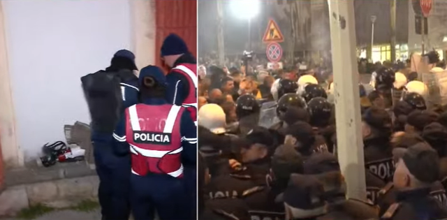 Protestuesit janë përplasur me policinë dhe kanë hedhur edhe kapsolla e mjete të tjera piroteknike.