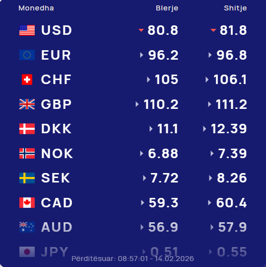 Këmbimi valutor 14 Shkurt, me sa blihen dhe shiten sot monedhat e huaja – – 27.al