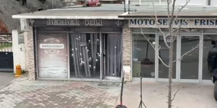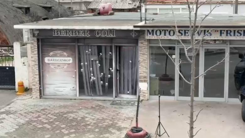 Policia u rikthye sërish në vendngjarje mëngjesin e së hënës. Si një betejë lufte, shenjat e plumbave shfaqen jo vetëm në fasadën e xhamtë të sallonit, por edhe në biznese të tjera.