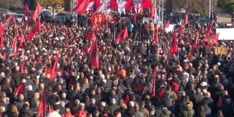 Mijëra protestues janë mbledhur në sheshin “Skenderbeu” në Shkup në kërkim të drejtësisë për ish-krerët e UÇK-së që po gjykohen në Hagë.