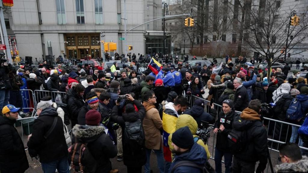 Turma njerëzish janë mbledhur pranë gjykatës së Nju Jorkut ku po shfaqet aktualisht presidenti i rrëzuar i Venezuelës, Nicolás Maduro.