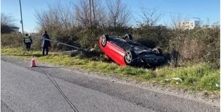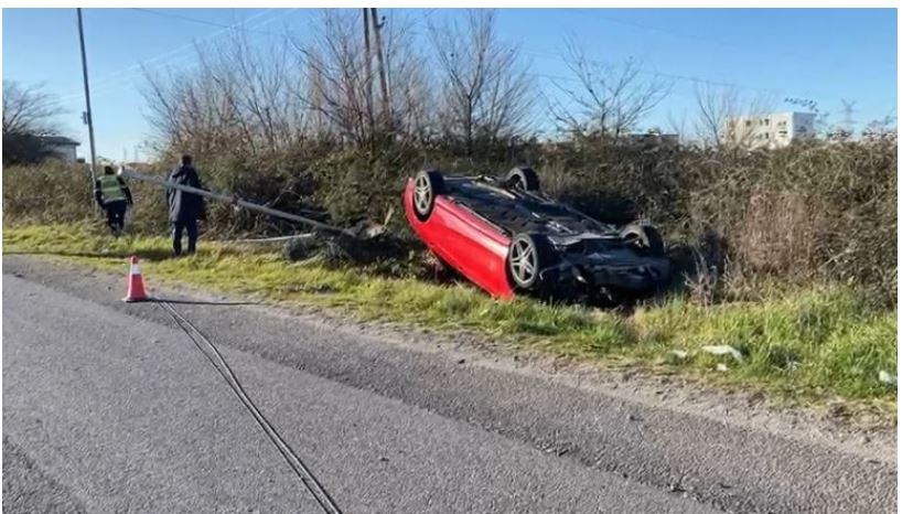 Një automjet, siç shikohet edhe në pamje, ka dalë nga rruga dhe është ‘ngulur’ në tokë.