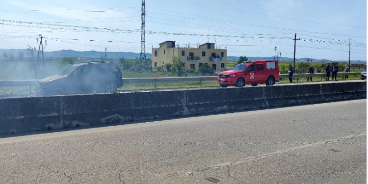 Një makinë tip “Benz” e cila po udhëtonte në autostradën Lushnjë-Rrogozhinë është përfshirë nga flakët ditën e sotme.