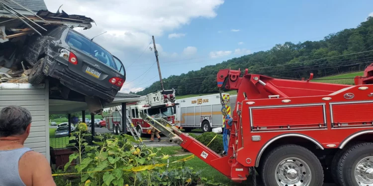 Ndërsa nga zyrtarët nga Pennsylvania State Police thanë se “përmes një hetimi u mor vesh se përplasja e makinës në katin e dytë të kësaj shtëpie ishte një akt i qëllimshëm”.