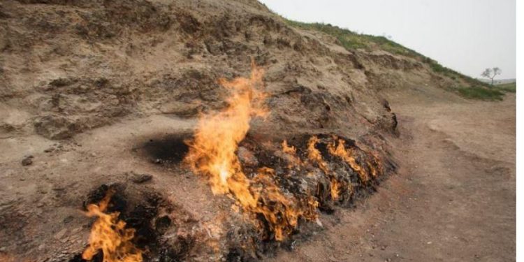 Ky është Yanar Dag, që do të thotë “mali i djegur” në gadishullin Absheron të Azerbajxhanit, ku Rahila punon si udhërrëfyese turistike.