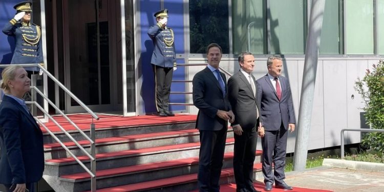 Kryeministri Albin Kurti foli për mediat pas takimit me kryeministrin e Holandës Mark Rutte dhe atë të Luksemburgut, Xavier Bettel.