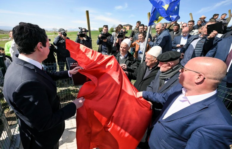 “Ngritja e kësaj pllake përkujtimore, është jo vetëm një shenjë, por edhe një zotim i yni ndaj kujtesës sonë si popull dhe ndaj kërkesës tonë për drejtësi, tha kryeministri Kurti”.