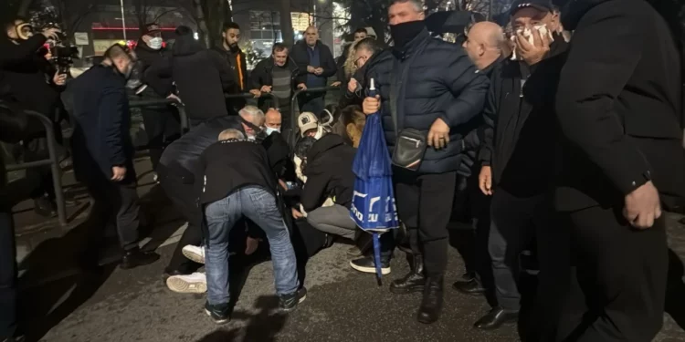Një prej protestuesve shfaqet i lënduar, teksa më pas transportohet me urgjencë për në spital.