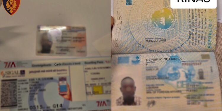 Dokumentet false janë sekuestruar në cilësinë e provës materiale, së bashku me dokumentet e identifikimit origjinale (pasaportë, ID) të shtetasit liberian, të cilat iu gjetën atij gjatë kontrollit fizik.