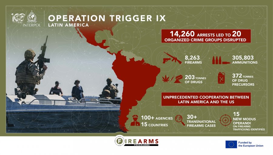 Në kuadër të operacionit “Trigger IX” u konfiskuan më shumë se 8,000 armë zjarri ilegale, 305,000 fishekë municionesh dhe u kryen pothuajse 15,000 arrestime.