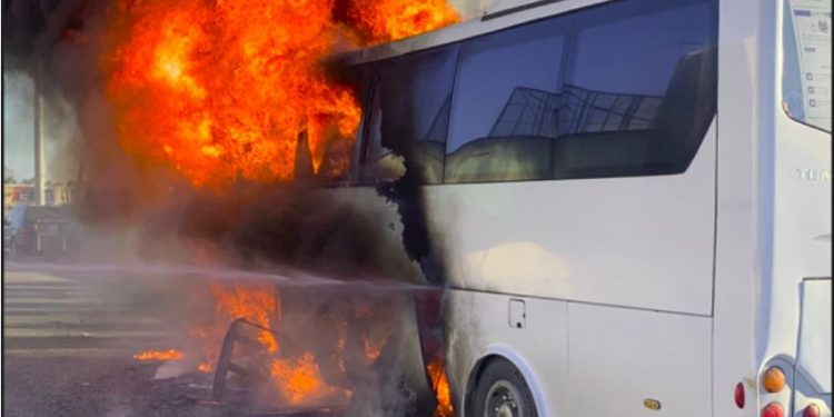 Drejtuesi i mjetit ka arritur që të dalë nga autobusi pa u lënduar. Në vendngjarje kanë mbërritur zjarrfikësit që kanë shuar flakët.