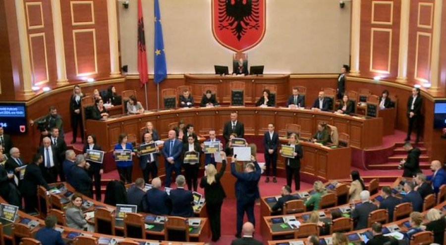 Nën vërshëllimat e bilbileve dhe zhurmuesve, deputetët bllokuan punimet e Kuvendit duke e bërë të pamundur zhvillimin e një seance normale.