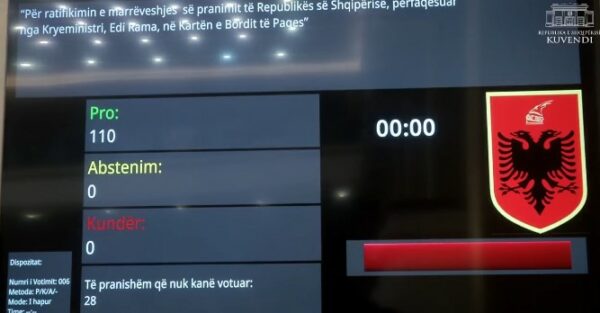 Në fund u kalua projektligji i Marrëveshjes nen për nen dhe në tërësi, ku mori në total 110 vota deputetësh.