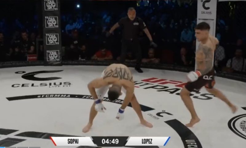 Megjithatë, dueli nuk shkoi më shumë se 10 sekonda me Sopai që gjeti të papërgatitur Lopez dhe me një grusht në fytyrë hodhi në tapet kundërshtarin.