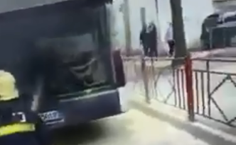 Ky është momenti kur autobusi i linjës së Institutit është përfshirë nga zjarri në Tiranë, teksa ishte në lëvizje.