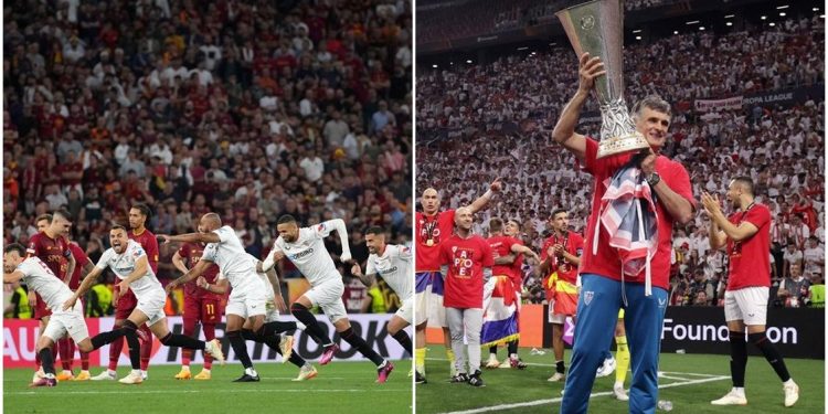 Trajneri i Sevillas, Jose Luis Mendilibar është i ngazëllyer pasi ekipi i tij fitoi Ligën e Evropës në ‘Puskas Arena’ në Budapest pas gjuajtjeve të penalltive në ndeshjen finale ndaj Romës.