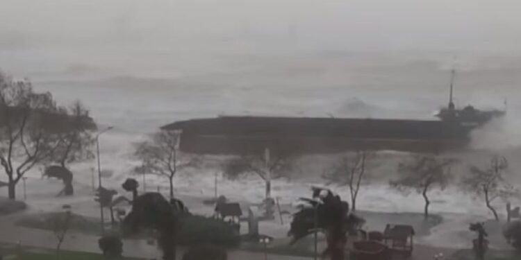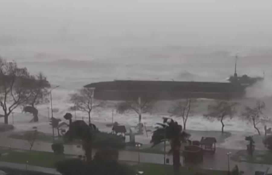Moti i keq “mbërthen” Turqinë, stuhia ndan në dysh anijen në port – – 27.al