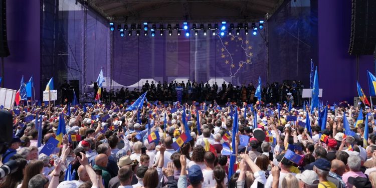 Dhjetëra mijëra njerëz u mblodhën në kryeqytetin e Moldavisë, Kishinau, më 21 maj, në shenjë mbështetje për lidhje më të ngushta me Bashkimin Evropian (BE), ndërkohë që qeveria pro-evropiane e vendit vazhdon të luftojë rrymat politike nga Rusia.