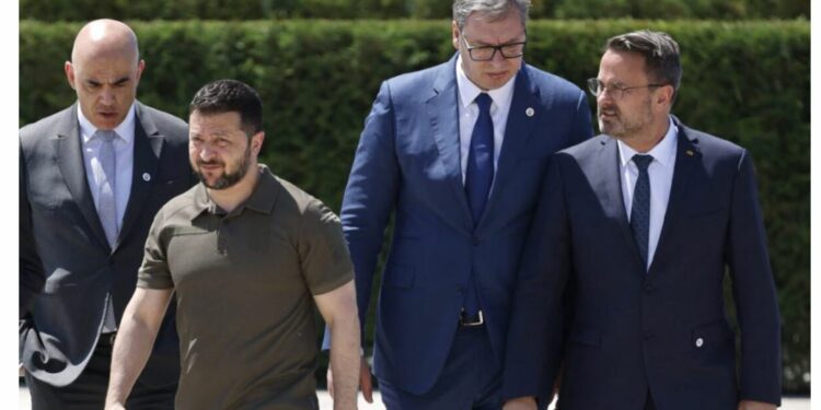 “Do të përpiqem të flas me Zelenskyn”, tha Vuçiq dhe shtoi, “do të ulem dhe do të bisedoj me të privatisht për gjithçka që ka ndodhur së fundmi rreth Kosovës, njohjen apo mosnjohjen e tërësisë territoriale të të dyjave vendeve. Ne respektojmë integritetin territorial të Ukrainës dhe shpresojmë që ata të respektojnë edhe tonin”.