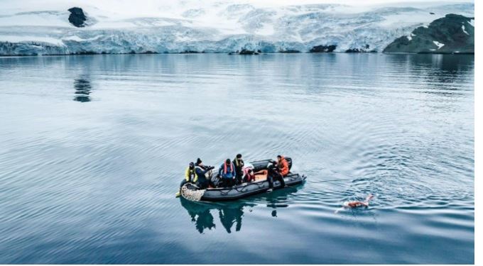 Një notare kiliane është bërë personi i parë që ka notuar afro 2.50 kilometra (1.55 milje) nëpër ujërat e ftohta të Antarktidës.