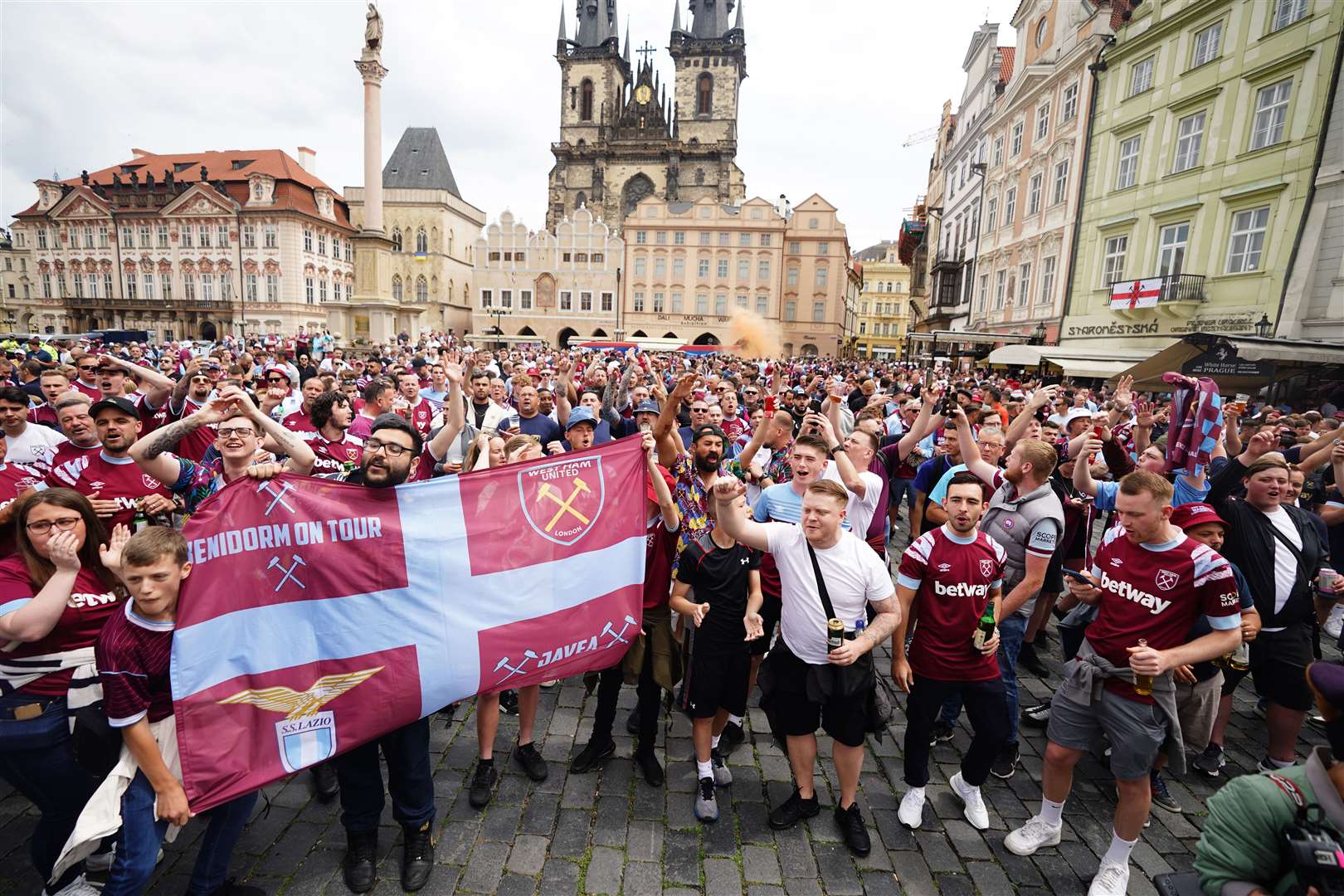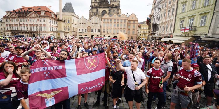 Tifozët janë mbledhur nëpër sheshe të ndryshme në Pragë dhe në mesin e atyre të West Ham, ka shumë italianë që valëvisin flamuj dhe shalle të Lazios.