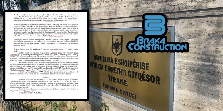 Diçitura: Pjesë nga vendimi i gjykatës për sekuestrimin e pallatit të “Braka Construction” (Mars 2018)