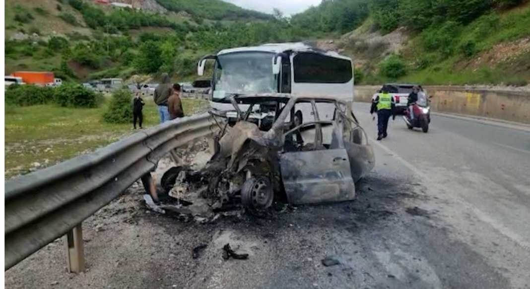 Ndërkohë, pamjet e siguruara tregojnë se si është shkrumbuar plotësisht mjeti i vogël.