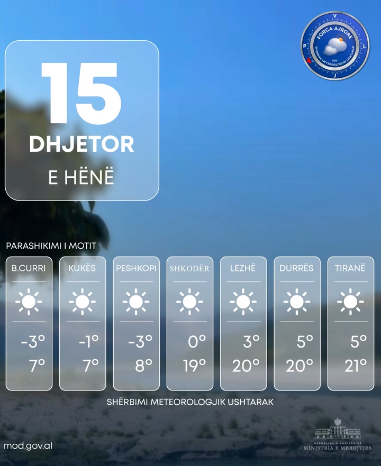 Ditën e hënë vendi ynë do të ndikohet nga kushte atmosferike të qëndrueshme.