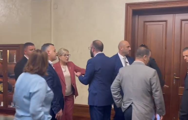 Pas kreu i Grupit të opozitës i bllokoi rrugën, kryeparlamentarja nuk hyri në zyrë por u largua.