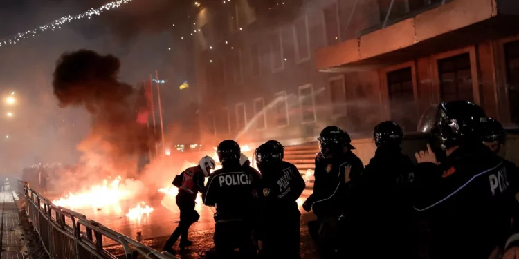 Pas mbylljes së fjalimit të Berishës, hidhen fishekzjarrë dhe molotovë drejt Kryeministrisë – – 27.al