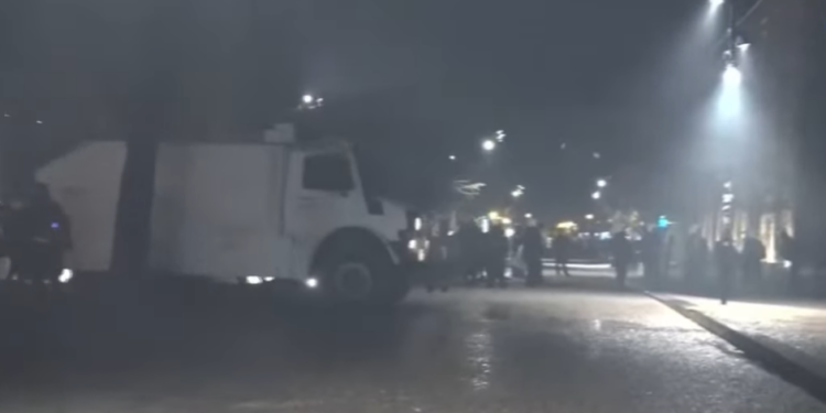 Ndërkohë, policia është përgjigjur me gaz lotsjellës.