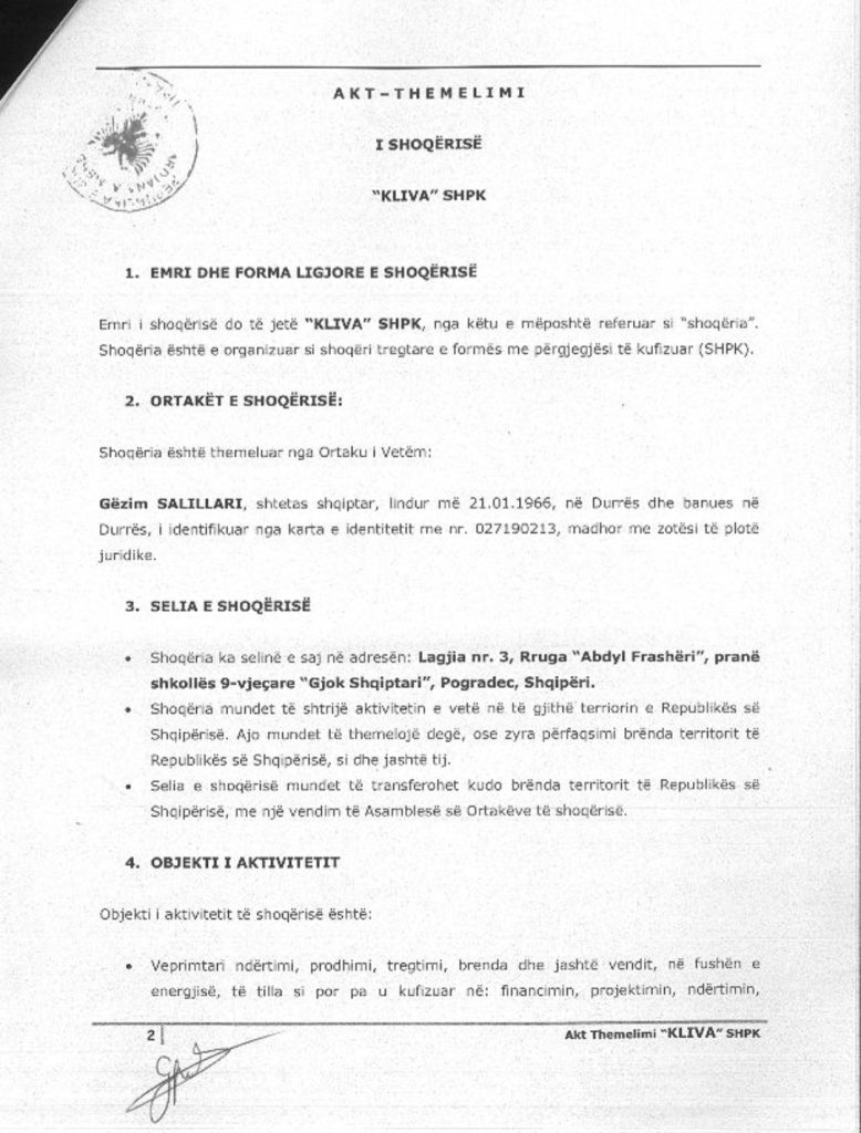 Në vitin 2011, Gëzim Salillari themelon kompaninë e ndërtimit Kliva shpk.