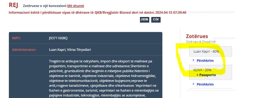 Fituesit janë pronarët e “Rej” shpk. Njëri pronar I kësaj kompanie është Luan Kapri, vëllai i Eduart Kaprit, kryetar i Bashkisë së Pogradecit 2015-2019. Në shkurt 2025, Eduart Kapri u dënua me kërkesë të SPAK me 1.6 vite burg, për shpërdorim detyre, pasi kishte lejuar kryerjen e punimeve në kundërshtim me ligjin në një pallat 14-katësh të kompanisë së themeluar nga vetë Kapri, që administrohet nga vëllai i tij.