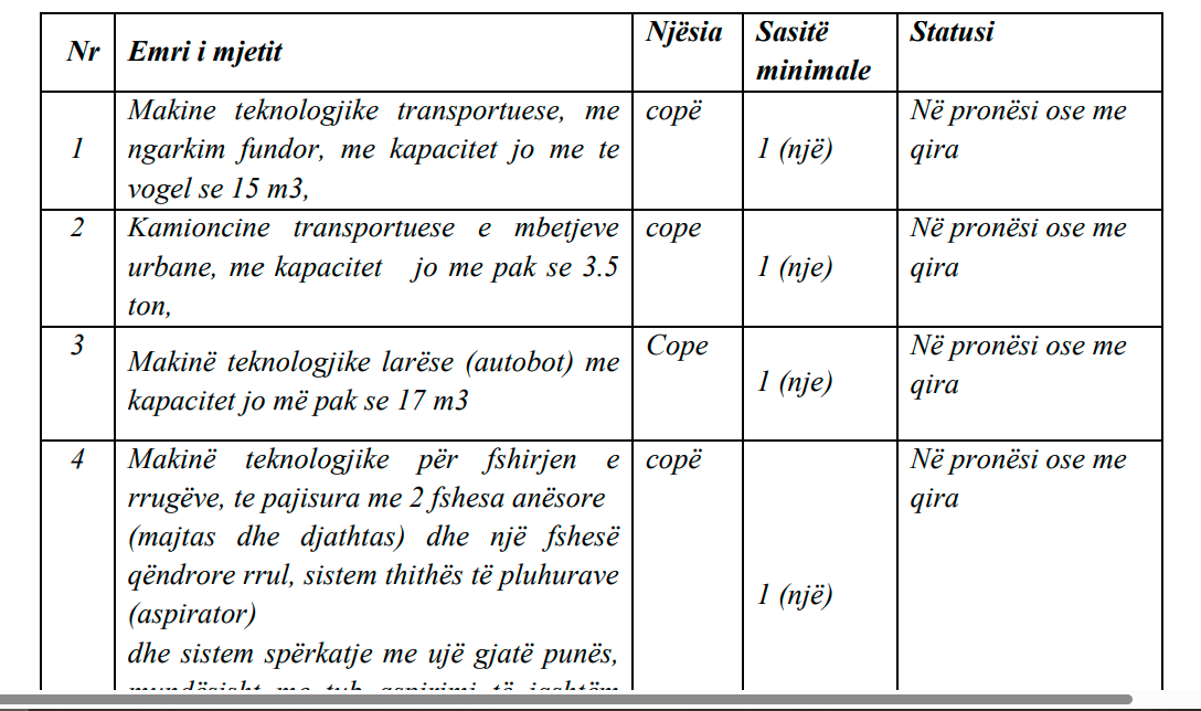 Ku shkojnë paratë e shtuara për pastrimin e Orikumit? Kjo është tabela e mjeteve që operatori fitues do të përdorë për pastrimin e Orikumit dhe të fshatrave përreth.