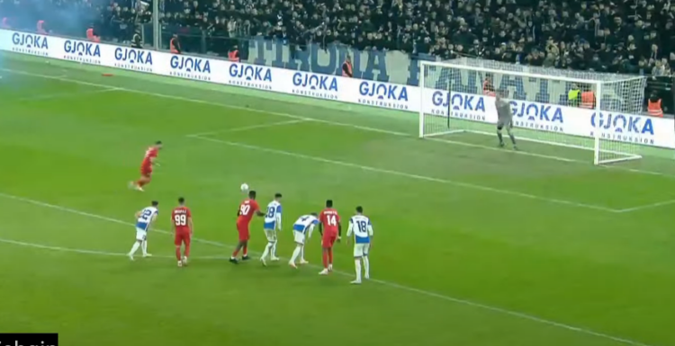 Pasi fiton një 11-metërsh, sulmuesi Xhuliano Skuka merr përsipër ekzekutimin e këtij 11-metërshi dhe nga pika e bardhë, nuk gabon duke mposhtur portierin Abdullahi.