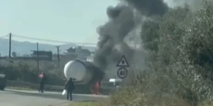 Një mjet tip autoboti me gaz është përfshirë nga flakët në aksin rrugor Elbasan Peqin, pranë fshatit Pajovë.