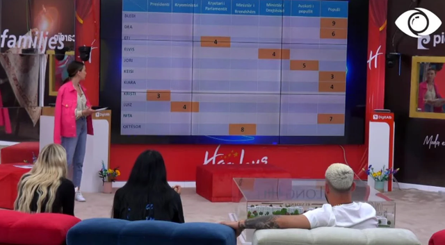 Banorët votuan për qeverinë e Big Brother, ndërsa rezultati final u shfaq në monitor.