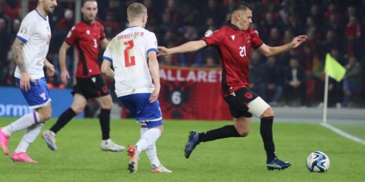 Ka përfunduar me rezultatin, 0 me 0 pjesa e parë, në mitikun “Air Albania”, mes “legjionarëve” tanë dhe përfaqësueses së Ishujve Faroe, sfidë kjo e vlefshme për ndeshjen e fundit të fazës kualifikuese të Kampionatit Evropian të futbollit, Euro 2024.