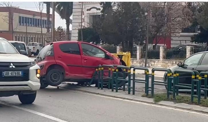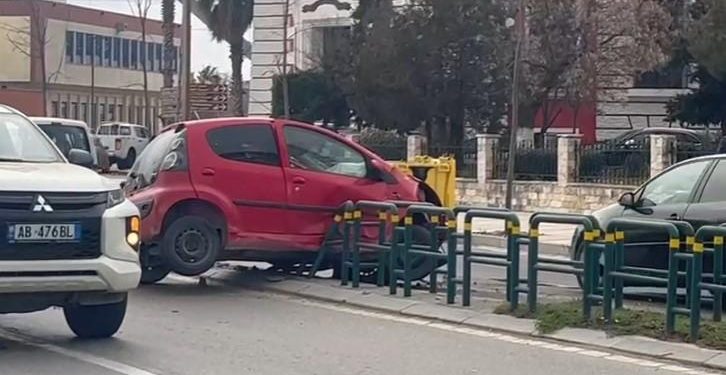 Një automejt tip Citroen është përplasur me barrierat mbrojtëse të rrugës pranë rrethrrotullimit në lagjen numër katër në Durrës.