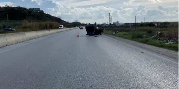 Automjeti me targa AA273XJ humbi kontrollin dhe pasi u përplas me trafikndrësen është përmbysur.