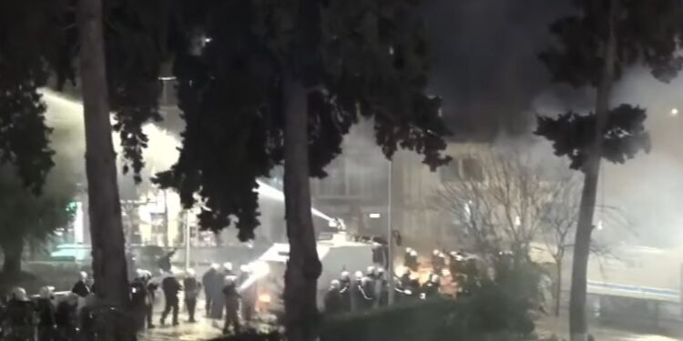 Tensionet janë përshkallëzuar para ambienteve të Parlamentit. Pasi protestuesit kanë hedhur bomba molotov dhe fishekzjarrë drejt policisë, forcat e rendit janë përgjigjur me gaz lotsjellës.