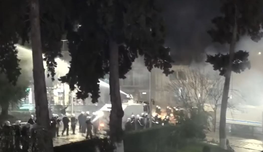 Situata mbetet e tensionuar, teksa policia ka përdorur edhe dy autobotë me ujë për të shpërndarë protestuesit.