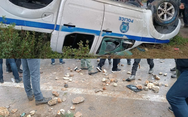 Gjatë incidenteve në Hania, fermerët përmbysën një automjet policie. Përveç kësaj, një furgon policie u dëmtua nga hedhja e gurëve siç shihet qartë në videon e mëposhtme.