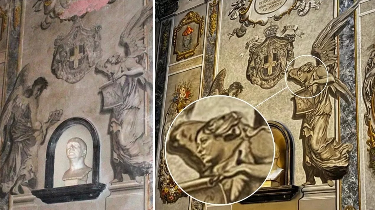 Incidenti ka të bëjë me Bazilikën e San Lorenzos në Lucina në Romë, ku, pas punimeve në njërën nga faltoret anësore, një nga engjëjt e skalitur pranë bustit të Umberto II të Savojës duket se ka marrë tipare që disa vëzhgues i kanë konsideruar të ngjashme me ato të kryeministres italiane Giorgia Meloni.