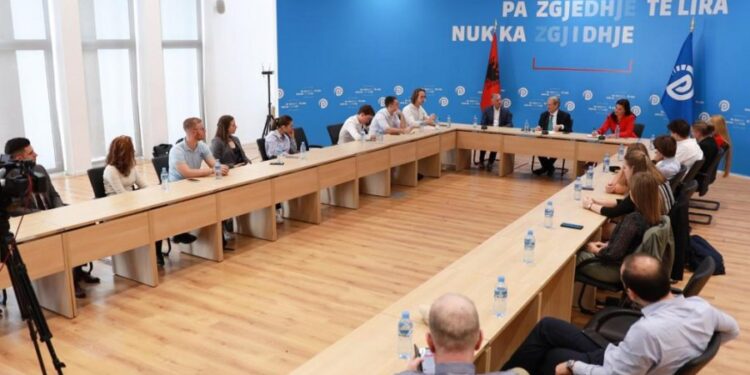 Kryedemokrati Sali Berisha priti në një takim disa të rinj që studiojnë në universitetin më të madh privat në Hungari, Mathias Corvinus Collegium.