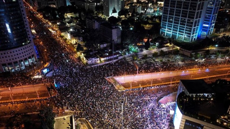 Protestat u organizuan në dy sheshet kryesore të Tel Aviv në një revoltë kundër reformës së gjyqësorit të shpallur nga kreu i qeverisë, e cila sipas protestuesve synon të kontrollojë drejtësinë dhe të shkatërrojë balancat demokratike